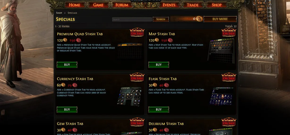 Buying stash tabs on sale is simple! Once the sale starts: